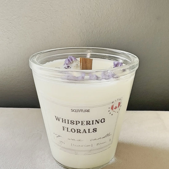 Light the Whispering Florals candle and let its graceful scent fill your home with tranquility and charm.